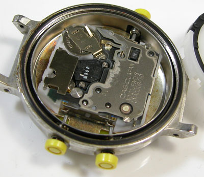 これで電池交換メンテナンス完了です。と、完了から2時間、様子を見るとデジタルは消えて止まっているでは。もう一度ムーブメント取り出しで乾燥させてみます。