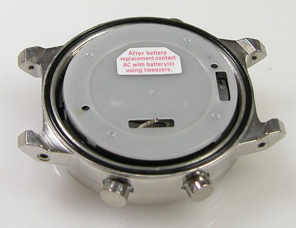 裏蓋を開けるとスペーサーが電池を覆っています。