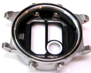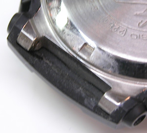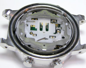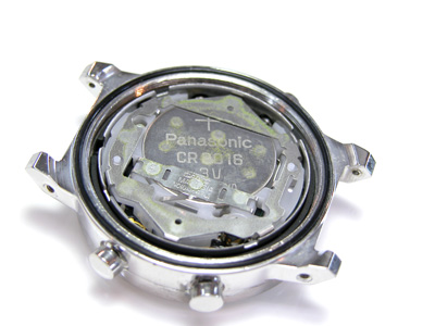 裏蓋を開けると白いプラスチックのスペーサーが見えますから、摘み出すと次に黒いゴムのスペーサーが見えます。