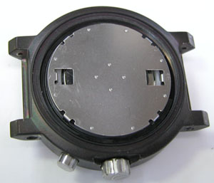 裏蓋はスクリューバックですがウレタンバンドを外さないと開けられない構造。