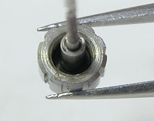 綺麗になったケースにムーブメントを戻して電池格納部をチェックします。