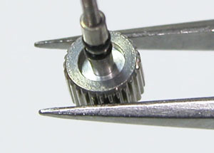 竜頭パイプも洗浄と思いきや。なんとムーブメントはケースに貼り付いて取り出せない。よってケース洗浄は諦め。