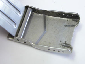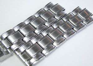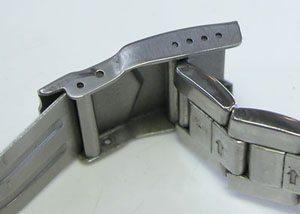 ステンレス無垢バンドに三つ折れダブルロック。