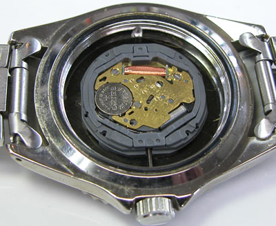 綺麗になったケースにムーブメントを戻して電池格納部をチェックします。