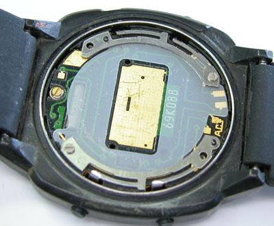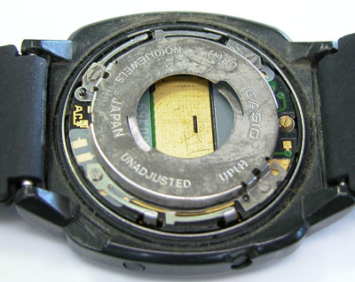裏蓋を開けると電池が無い。電池押さえはありますが外して。