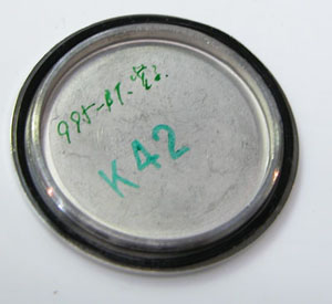 ムーブメント拡大。この電池の浮き方からも慣れない人が触った痕跡。