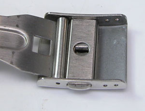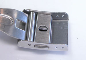 ステンレス無垢バンドに三つ折れプッシュバックル。