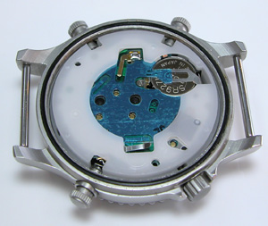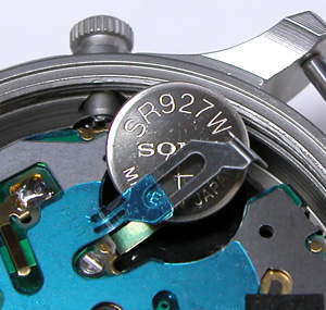 ムーブメントを戻して電池交換。SR927Wクロノグラフ用orライト用電池とでも言いますか。