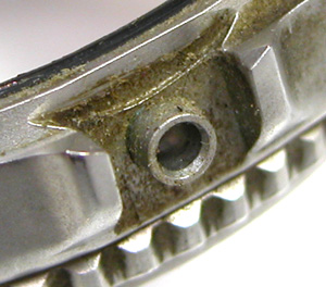 綺麗になったケースにムーブメントをもどして電池格納部をチェックします。