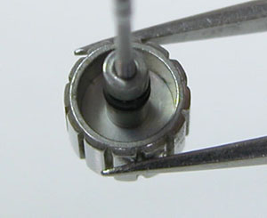 綺麗になったケースにムーブメントを戻して電池格納部をチェックします。