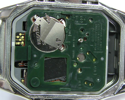 綺麗になったケースにムーブメントを戻して電池格納部をチェックします。