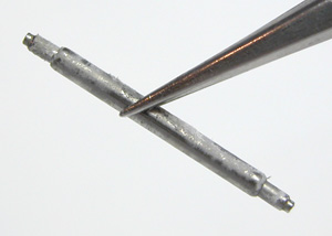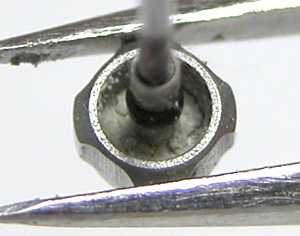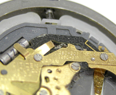 綺麗になったケースにムーブメントをもどしてチリ吹きでホコリを飛ばして電池格納部をチェック。新しい電池を入れてみると当然・・・動いた!!(・・;ノ)ノ