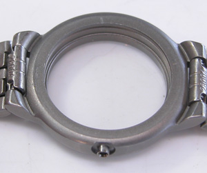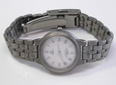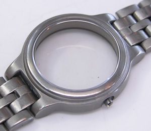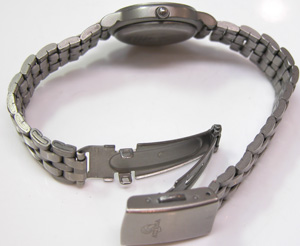 チタンの板巻きバンドに三つ折れプッシュバックル。ベルト調整も依頼ですから。