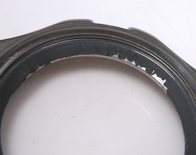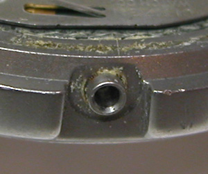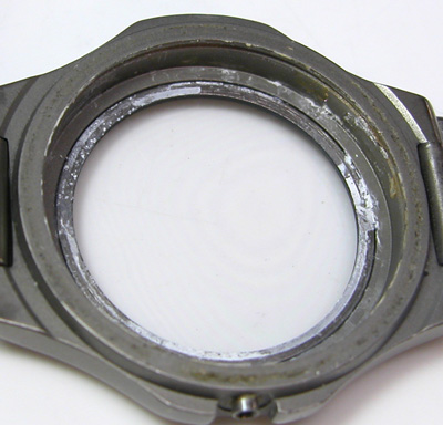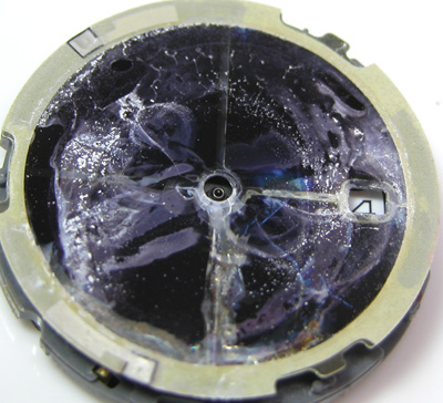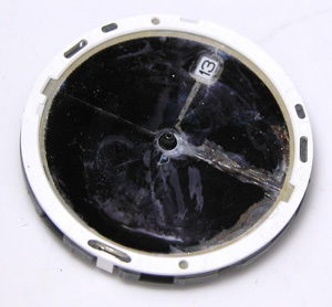 パッキンはこの状態では効いていませんね。文字盤を外してみますと。