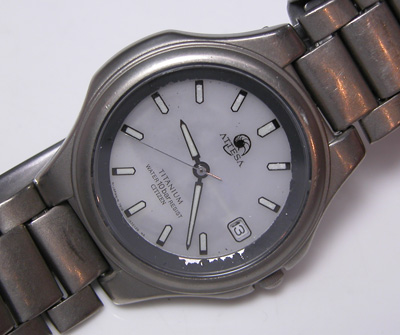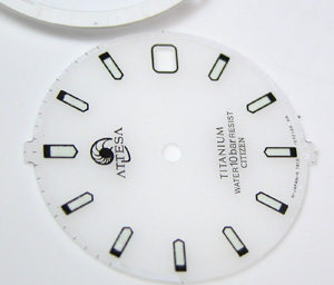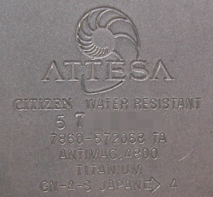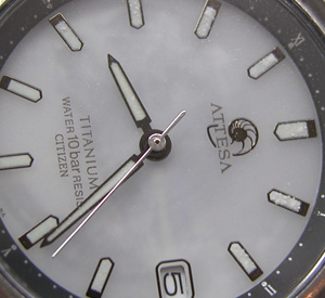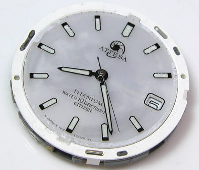 ATTESA Eco Drive 7860-572068電池交換メンテナンスです。電池交換ではなく修理依頼でしたがこちらで紹介。文字盤の白い部分に模様が・・?