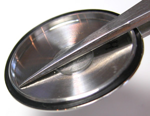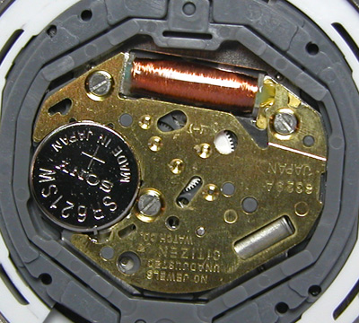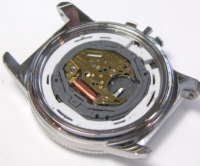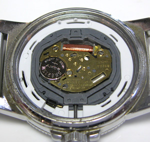 綺麗になったケースにムーブメントをもどして電池格納部をチェックします。