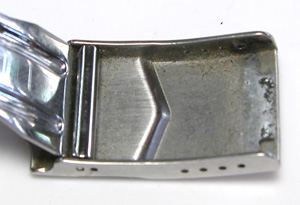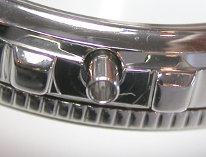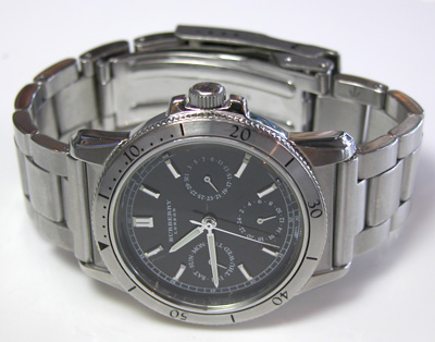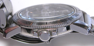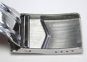 ステンレス無垢バンドに三つ折れダブルロックはダイバー仕様ですが、この時計はダイバーでは無いでしょう。
