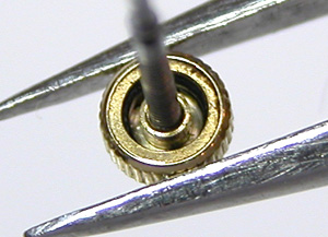 竜頭パイプもチェックします。これが取り出した文字盤&ムーブメント。