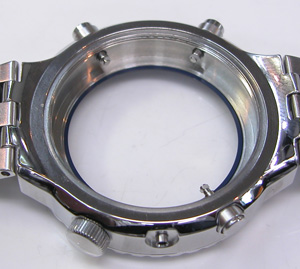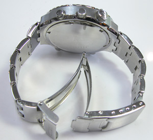 カーブガラスにステンレス無垢バンドに三つ折れダブルロック。