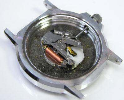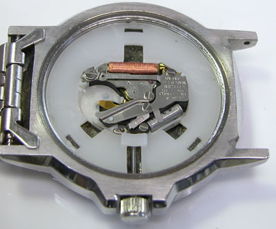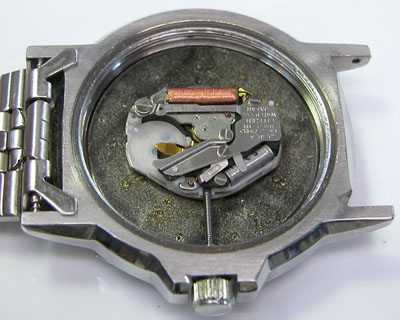 綺麗になったケースにムーブメントを戻して電池格納部をチェックします。