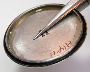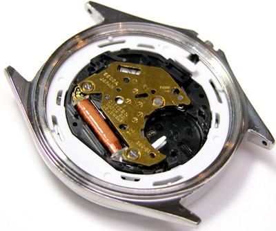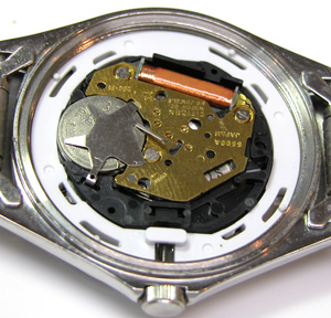 綺麗になったケースにムーブメントをもどして電池格納部をチェックします。