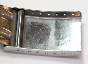 パッキンにシリコン塗布をして裏蓋に戻します。ベルトも洗浄で綺麗になりました。