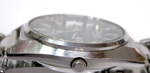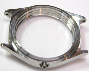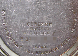 ベルトはステンレス無垢バンドですが交換されています。こちら裏蓋記載。