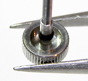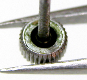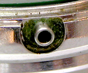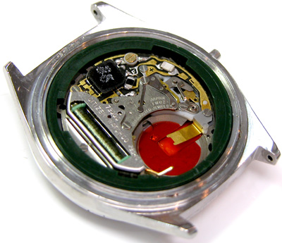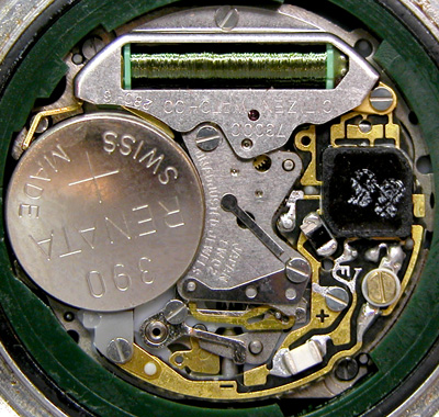 綺麗になったケースにムーブメントをもどして電池格納部をチェックします。