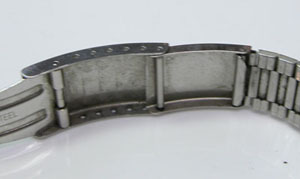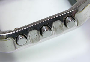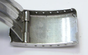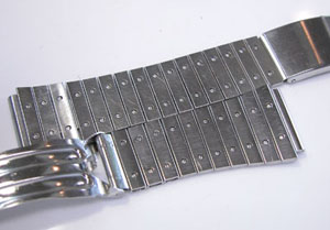 ステンレス板巻きバンドに三つ折れバックルですがジョイントされています。