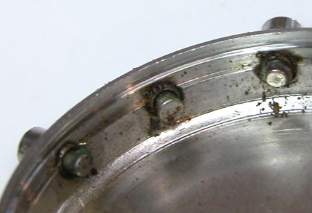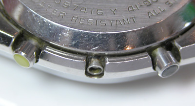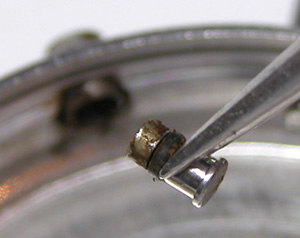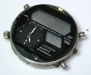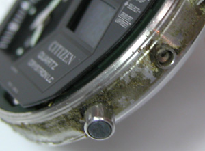 裏蓋の洗浄は完了。でもボタンは動きません。これはボタンを抜くしかありませんが、かなりの手間。