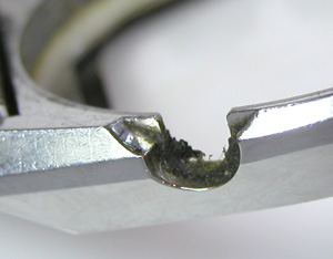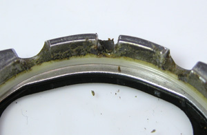 電池蓋パッキンですがパリパリ、それに本来の3倍くらいの幅に潰れています。