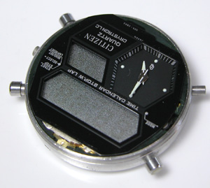 裏蓋は小さな電池蓋と大きな、はめ込み蓋。