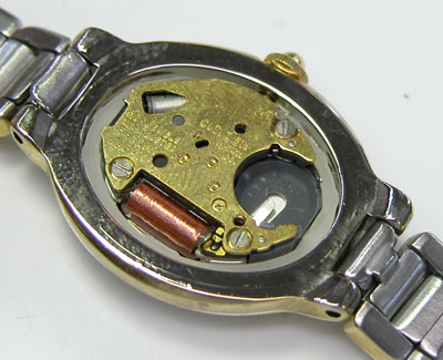 綺麗になったケースにムーブメントを戻して電池格納部をチェックします。