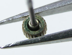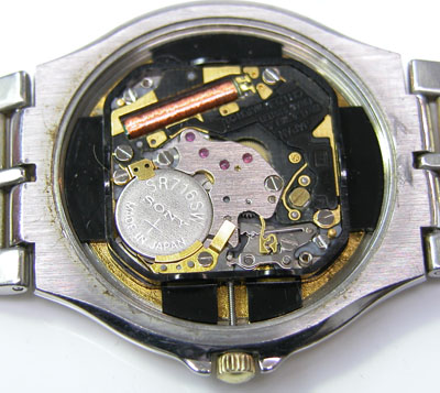 綺麗になったケースにムーブメントを戻して電池格納部をチェックします。