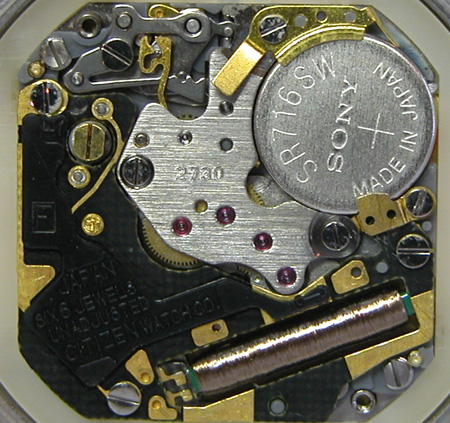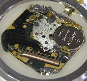 綺麗になったケースにムーブを戻して電池格納部をチェックします。新しい電池を入れて。