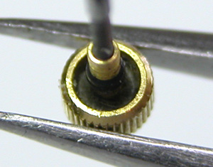 竜頭の裏側もチェックします。これが取り出した文字盤&ムーブメント。