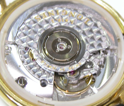 綺麗なムーブメントですね。そうそう肝心の「音」ですが機械留めネジもローターの固定ネジもシッカリ締まっている。つまりはローターの遊び音で薄型に仕上げた故に起こる症状で異常は無しでした。