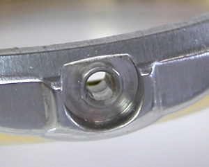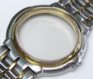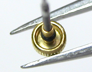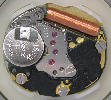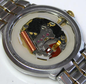 洗浄したケースにムーブメントを戻して電池格納部をチェックします。新しいパッキンを入れて。