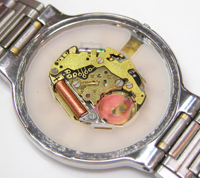 綺麗になったケースにムーブメントを戻して電池格納部をチェックします。