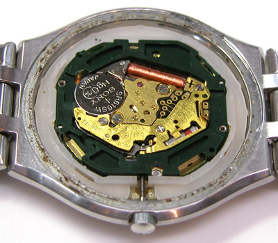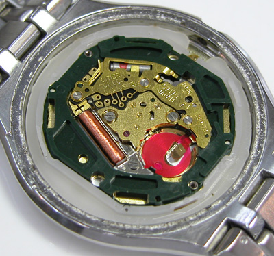 綺麗になったケースにムーブメントを戻して電池格納部をチェックします。