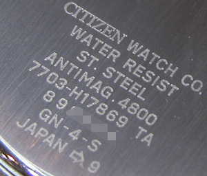 裏蓋も磨いて綺麗になりました。右は裏蓋記載。