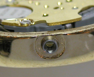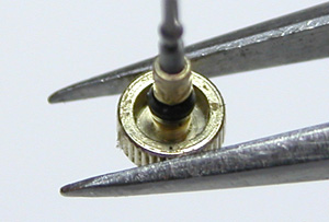 竜頭パイプもチェックします。これが取り出した文字盤&ムーブメント。