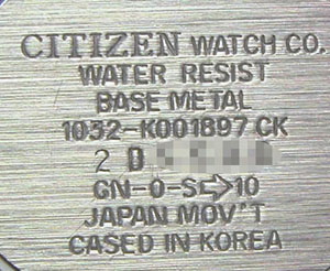裏蓋は”はめ込みタイプ”で右が裏蓋記載。
