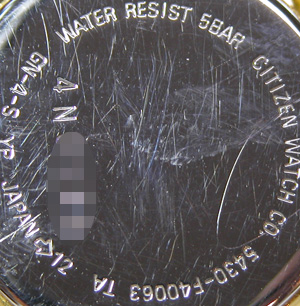 これが裏蓋記載。ラグ部のチェックをして開け口はココです。