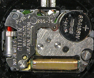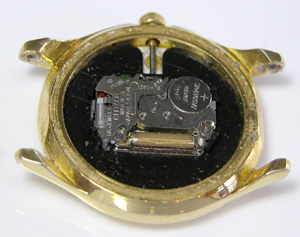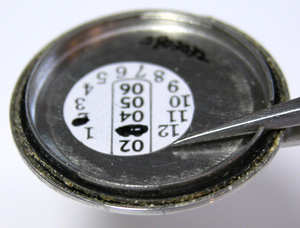 竜頭の裏側をチェックします。これが取り出した文字盤&ムーブメント。
