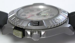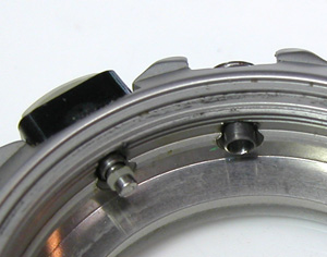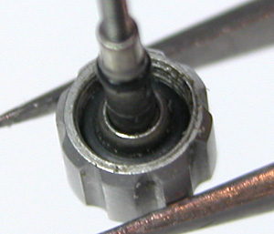竜頭はねじ込みです。竜頭の裏側もチェックします。
