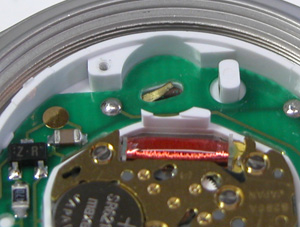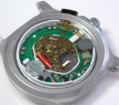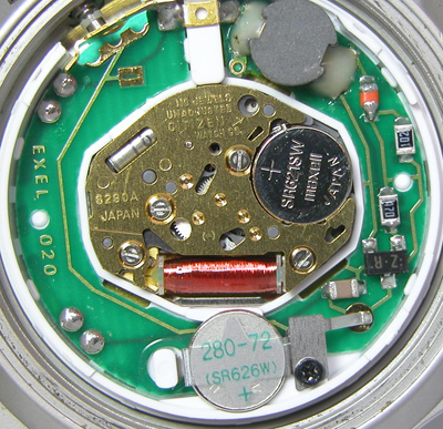 これがムーブメント、時計用とELライト用の電池が別になっています。