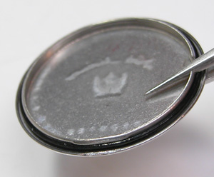 綺麗になったケースにムーブメントを戻して電池格納部をチェックします。