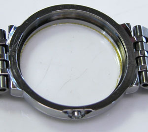 ケースの洗浄は終わってツヤが出ましたがガラスの縁が気になります。