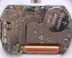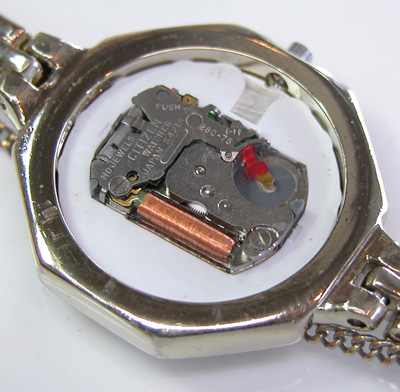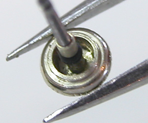 綺麗になったケースにムーブメントを戻して電池格納部をチェックします。